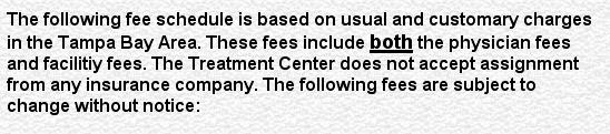 1. Will the Center bill insurance or is money paid up front? The Center is a private research institute that provides care to patients worldwide. Unlike medical practice in hospitals and universities in the USA, the Center receives no financial support from state or federal agencies. The Institute does not have an Accounts Receivable Department. Therefore, the Center requires money up front from the insurance company, the patient or another third party. The fee schedule is based on usual and customary charges in the Tampa Bay Area of Florida. Our staff will assist you in financially planning for your care with us. We will make it as easy as possible for patients to receive, if appropriate, reimbursement from their insurance companies. The Center has created a two step process to facilitate financial planning and reimbursement.