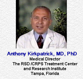 In 2001 Dr. Kirkpatrick established The International Research Foundation for RSD / CRPS . He has had the honor of serving as the Chairman of the Foundation’s distinguished Scientific Advisory Committee since its inception. His duties for the Foundation have included conducting clinical research, educating and advising patients who elect to participate in clinical studies, and providing special treatments for RSD / CRPS research subjects.